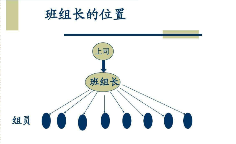 班组长是“兵头将尾”,在领导眼前是兵,在团小组中是将,具有承前启后特殊作用。是上下连接的“纽带”。一方面要高度重视和领导的关联,与此同时要关怀员工。